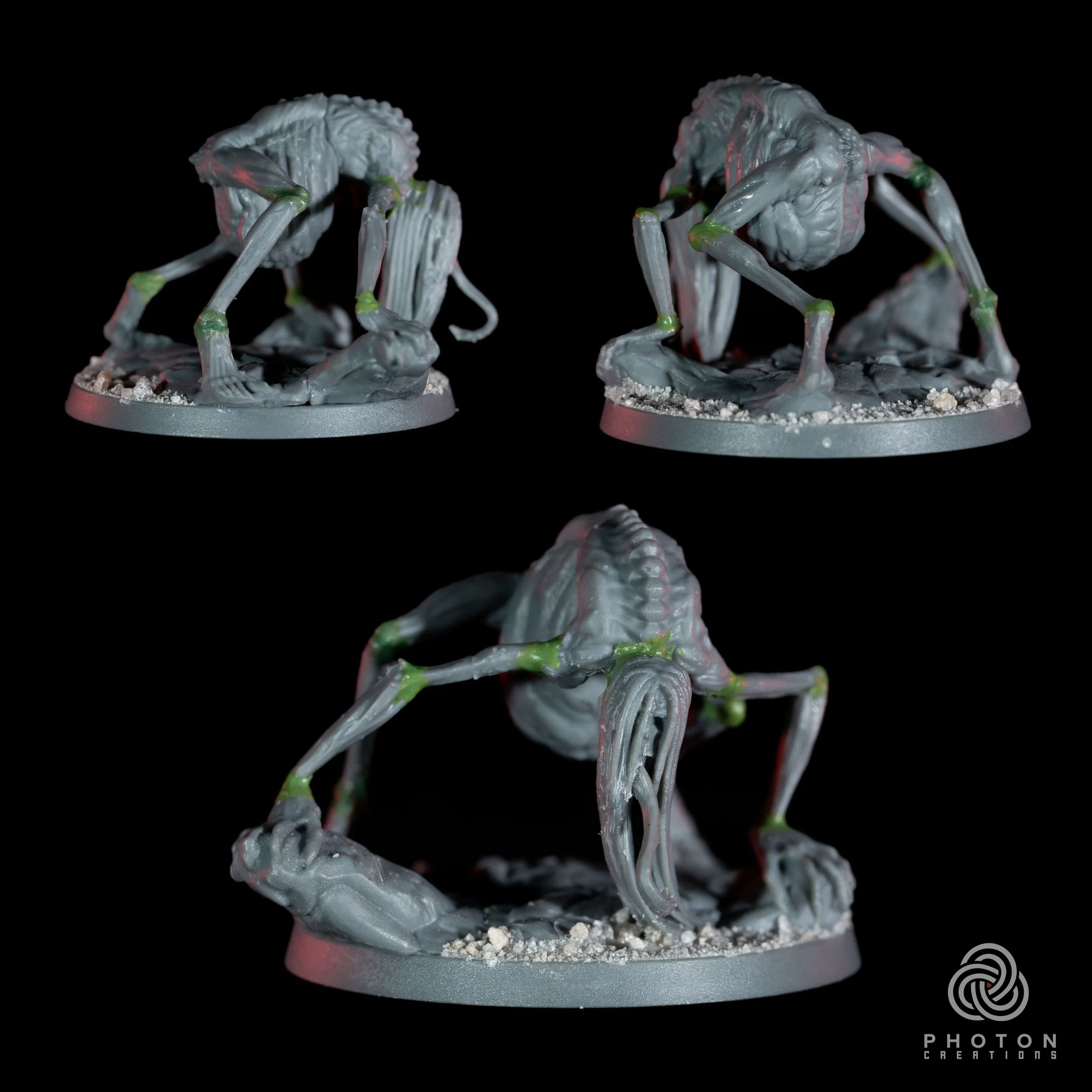 The Bloodlickers are rather grotesque creatures, with their long spindly legs and bloated bodies. I just wanted to give when all a unique pose, which actually ended up being a fair bit of work. For one I cut all the knees/elbows and ankles/wrists to get its body to sit in a different spot. For another I cut up the whole base it was attached to, moving the feet to different places, while adjusting the limbs to match. Most of them I also cut the neck to readjust the head.